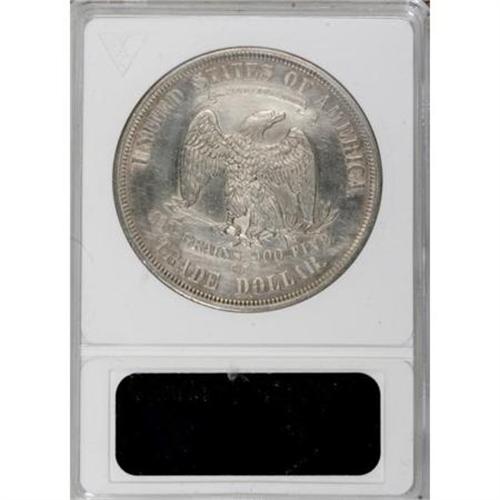 <B>1875-CC T$1 --Chopmarked, Cleaned--ANACS. AU55 Details.</B></I> NGC Census: (14/162). PCGS Population (30/167). Mintage: 1,573,700. Numismedia Wsl. Price for NGC/PCGS coin in AU55: $358. (#7038)<BR><BR><B>Coin Engraver:</B> William Barber<BR><BR><b>Shipping:</b> Coins & Currency (<a target="_blank" href="http://www.heritageauctions.com/common/shipping.php">view shipping information</a>)