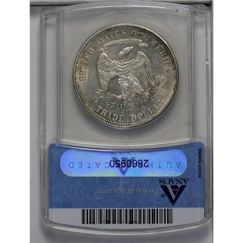 1875-CC T$1 AU58 ANACS. Type Two Reverse. Luster is pl 1875-CC