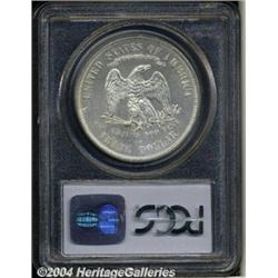 <B>1875-CC<T$1> MS62 PCGS.</B></I> Sharply struck and untoned, with a few die striations (as struck) noticeable in the fields, a few minor contact marks, and a soft, satiny sheen on both sides. Population: 33 in 62, 56 finer (3/04). <BR><BR><B>Important notice:</B> Heritage usually auctions material at the rate of 200-250 lots per hour. On some occasions eBay Live bid software or the Internet may not be able to keep up with the pace of the auction. We recommend placing a realistic absentee bid now as insurance to avoid disappointment. Occasionally the auctioneer may eliminate or reject an eBay Live bid, and the auctioneer may also reopen a lot after the close of the eBay live bidding (usually because we missed an audience bid), and may reject your bid even if it shows you as the winning bidder. By bidding via eBay Live, you agree that Heritage may award the lot to another bidder at its sole discretion under the circumstances described above or any other reasonable circumstances. Since eBay bids are not shown to us until we open the lot on the floor, we treat those bids just like floor bids. In most cases the floor responds before the eBay bid is presented to us, due to Internet lag time, so for consistency we have made it a policy that floor bids are always considered first over tie eBay live bids. Also please note that all Heritage lots purchased through eBay Live carry a 20% Buyer's Premium. Please make sure you read the Terms and Conditions before you bid. </span></font></tr></table></td></tr></table>