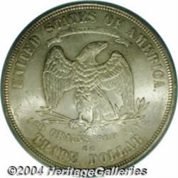 <table><tr><td><table><tr><td>1875-CC T$1 MS63 PCGS. Type One Reverse. A lustrous example with original light honey-gold and pearl-gray patina. The fields have a few light marks that are proper for the grade. Crisply struck aside from the eagle's right (facing) leg. An available issue by the rarified standards of Carson City Trade Dollars, but undeniably scarce as a type coin from this famous western mint. Population: 41 in 63, 18 finer (2/04). <BR><BR><B>Important notice:</B> Heritage usually auctions material at the rate of 200-250 lots per hour. On some occasions eBay Live bid software or the Internet may not be able to keep up with the pace of the auction. We recommend placing a realistic absentee bid now as insurance to avoid disappointment. Occasionally the auctioneer may eliminate or reject an eBay Live bid, and the auctioneer may also reopen a lot after the close of the eBay live bidding (usually because we missed an audience bid), and may reject your bid even if it shows you as the winning bidder. By bidding via eBay Live, you agree that Heritage may award the lot to another bidder at its sole discretion under the circumstances described above or any other reasonable circumstances. Since eBay bids are not shown to us until we open the lot on the floor, we treat those bids just like floor bids. In most cases the floor responds before the eBay bid is presented to us, due to Internet lag time, so for consistency we have made it a policy that floor bids are always considered first over tie eBay live bids. Also please note that all Heritage lots purchased through eBay Live carry a 20% Buyer's Premium. Please make sure you read the Terms and Conditions before you bid. <BR><BR><B>IMPORTANT ANNOUNCEMENT ABOUT RESERVES:</B> Heritage now divulges all reserves on its web site 7 days before every auction. If you want to know whether the reserve on this lot has been met, and if not, what the reserve amount is, please visit this lot page on the HeritageCoin.com web site, or email: bid@HeritageGalleries.com </span></font></td></tr></table></td></tr></table>