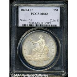 <table><tbody><tr><td><table> <TR><TD width="100%"><TABLE cellSpacing=1 cellPadding=3 width="100%" border=0><TBODY><TR><TD width="100%" bgColor=#79735c><FONT face=arial color=#ffffff size=3><B>Description</B> </FONT></TD></TR><TR><TD width="100%" bgColor=#ffffff><FONT face=arial size=2><B>1875-CC T$1 MS63 PCGS.</B></I> Type One Reverse. A sharply struck, frosty representative with tinges of golden color collecting about the devices. Abrasions are more numerous on the obverse. The mintage of more than 1.5 million pieces is the highest Carson City output for the series, but most were extensively circulated and today the '75-CC is scarce in any Uncirculated grade. The allure of the Carson City mintmark only adds to the demand for quality specimens. Population: 37 in 63, 16 finer (10/03). </FONT></TD></TR></TBODY></TABLE></TD></TR></TBODY></TABLE><BR><A name=PricesRealized></A><TABLE cellSpacing=0 cellPadding=0 width="100%" bgColor=#000000 border=0><TBODY><TR><TD width="100%"><TABLE cellSpacing=1 cellPadding=3 width="100%" border=0><TBODY><TR><TD width="100%" bgColor=#79735c><A name=PR><FONT face=arial color=#ffffff size=3><B>Previous Prices from Heritage Auctions</B> </FONT></A></TD></TR><TR><TD bgColor=#f6f6ed><TABLE cellSpacing=0 cellPadding=0 width="100%" border=1><TBODY><TR><TD align=middle width="33%"><B>Date</B></TD><TD align=middle width="33%"><B>Service</B></TD><TD align=middle width="33%"><B>Price</B></TD></TR><TR bgColor=whitesmoke><TD width="33%"><B>05/15/2001</B></TD><TD width="33%">NGC</TD><TD width="33%">$2,150.00</TD></TR><TR bgColor=whitesmoke><TD width="33%"><B>09/28/2002</B></TD><TD width="33%">PCGS</TD><TD width="33%">$2,530.00</TD></TR><TR bgColor=whitesmoke><TD width="33%"><B>01/10/1998</B></TD><TD width="33%">NGC</TD><TD width="33%">$1,955.00</TD></TR><TR bgColor=whitesmoke><TD width="33%"><B>01/01/2000</B></TD><TD width="33%">PCGS</TD><TD width="33%">$2,415.00</TD></TR></TBODY></TABLE></TD></TR><TR><TD bgColor=#ffffff><FONT face=arial size=1 ?>PLEASE NOTE: All prices realized reflect the final hammer price PLUS the buyer's premium in auctions that charge a buyer's premium. Each item has a notation at the top of the listing indicating whether that lot included a buyer's premium. Example: A item that sells with a final hammer price of $100 and a 20% buyer's premium will display with a price realized of $120. All information listed is intended to be as accurate as possible, but errors are possible. Please use this guide carefully and inform us of any inaccuracies. </FONT></TD></TR></TBODY></TABLE></TD></TR></TBODY></TABLE><BR><TABLE cellSpacing=0 cellPadding=0 width="100%" bgColor=#000000 border=0><TBODY><TR><TD width="100%"><TABLE cellSpacing=1 cellPadding=3 width="100%" border=0><TBODY><TR><TD width="100%" bgColor=#79735c colSpan=6><FONT face=arial color=#ffffff size=3><B>Price Guide*</B> </FONT></TD></TR><TR bgColor=#f6f6ed><TD align=middle><B>Grade</B> </TD><TD align=middle><B>Coin World<BR>(Trends)</B> </TD><TD align=middle><B>Numismedia<BR>Retail</B> </TD><TD align=middle><B>Numismedia<BR>Wholesale</B> </TD><TD align=middle><B>Coin<BR>Universe</B> </TD><TD align=middle><B>Heritage<BR>Value Index</B> </TD></TR><TR bgColor=#ffffff><TD align=middle>62</TD><TD align=right>$2,500.00</TD><TD align=right>---</TD><TD align=right>$1,450.00</TD><TD align=right>---</TD><TD align=right>$1,557.67</TD></TR><TR style="FONT-WEIGHT: bold" bgColor=#cccfdd><TD align=middle>63</TD><TD align=right>$3,300.00</TD><TD align=right>---</TD><TD align=right>$2,175.00</TD><TD align=right>$2,600.00</TD><TD align=right>$2,105.63</TD></TR><TR bgColor=#ffffff><TD align=middle>64</TD><TD align=right>$10,000.00</TD><TD align=right>---</TD><TD align=right>$5,975.00</TD><TD align=right>$7,150.00</TD><TD align=right>$6,483.13</TD></TR><TR bgColor=#ffffff><TD colSpan=6><FONT size=1>*All information listed is intended to be as accurate as possible, but errors are possible. No item may be returned or refused based on this information which is provided as a service to our customers. You should contact each pricing source directly to determine the accuracy of this information. </FONT></TD></TR></TBODY></TABLE></TD></TR></TBODY></TABLE><BR><TABLE cellSpacing=0 cellPadding=0 width="100%" bgColor=#000000 border=0><TBODY><TR><TD width="100%"><TABLE cellSpacing=1 cellPadding=3 width="100%" border=0><TBODY><TR><TD width="100%" bgColor=#79735c><FONT face=arial color=#ffffff size=3><B>Population Guide</B> </FONT></TD></TR><TR bgColor=#ffffff><TD align=middle><!-- Begin Output of Population Grid--><TABLE cellSpacing=0 cellPadding=0 width="100%" border=0><TBODY><TR><TD vAlign=center><TABLE cellSpacing=0 width="100%" border=1 cellsadding="3"><TBODY><TR><TD vAlign=center><TABLE cellSpacing=0 cellPadding=3 width="100%" border=1><TBODY><TR><TD vAlign=center align=middle bgColor=#f0f1e8 colSpan=2 <CENTER><FONT face=Arial size=2><B>PCGS Pop </B></FONT><CENTER></CENTER></TD><TD vAlign=center align=middle bgColor=#f0f1e8 colSpan=2><CENTER><FONT face=Arial size=2><B>NGC Pop</B></CENTER></FONT></TD></TR><TR><TD vAlign=center><FONT face=Arial size=2>(63)</FONT> </TD><TD vAlign=center align=right><FONT face=Arial size=2>37</FONT> </TD><TD vAlign=center><FONT face=Arial size=2>(63)</FONT> </TD><TD vAlign=center align=right><FONT face=Arial size=2>21</FONT> </TD></TR><TR><TD vAlign=center><FONT face=Arial size=2>(>63)</FONT> </TD><TD vAlign=center align=right><FONT face=Arial size=2>16</FONT> </TD><TD vAlign=center><FONT face=Arial size=2>(>63)</FONT> </TD><TD vAlign=center align=right><FONT face=Arial size=2>20</FONT> </TD></TR></TBODY></TABLE></TD></TR></TBODY></TABLE></TD></TR></TBODY></TABLE><!-- End Output of Population Grid--></TD></TR></TBODY></TABLE></TD></TR></TBODY></TABLE><BR><TABLE cellSpacing=0 cellPadding=0 width="100%" bgColor=#000000 border=0><TBODY><TR> <font color='#000000'><span style='background-color: #FFFFFF'><td bgcolor='#FFFFFE'> Important notice: Heritage usually auctions material at the rate of 200-250 lo