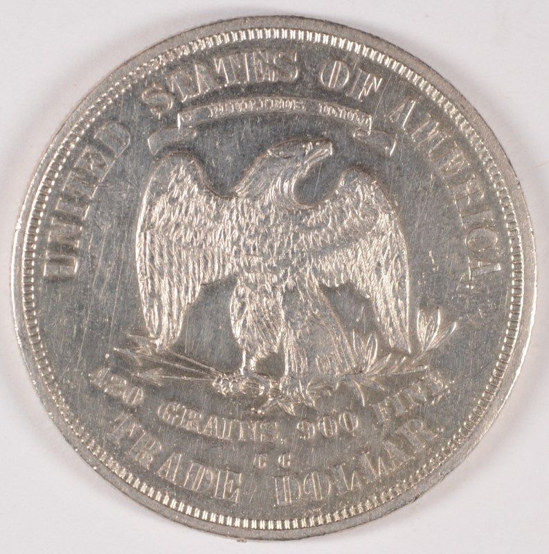 1875-CC TRADE DOLLAR, AU-58, RARE CARSON CITY MINT!