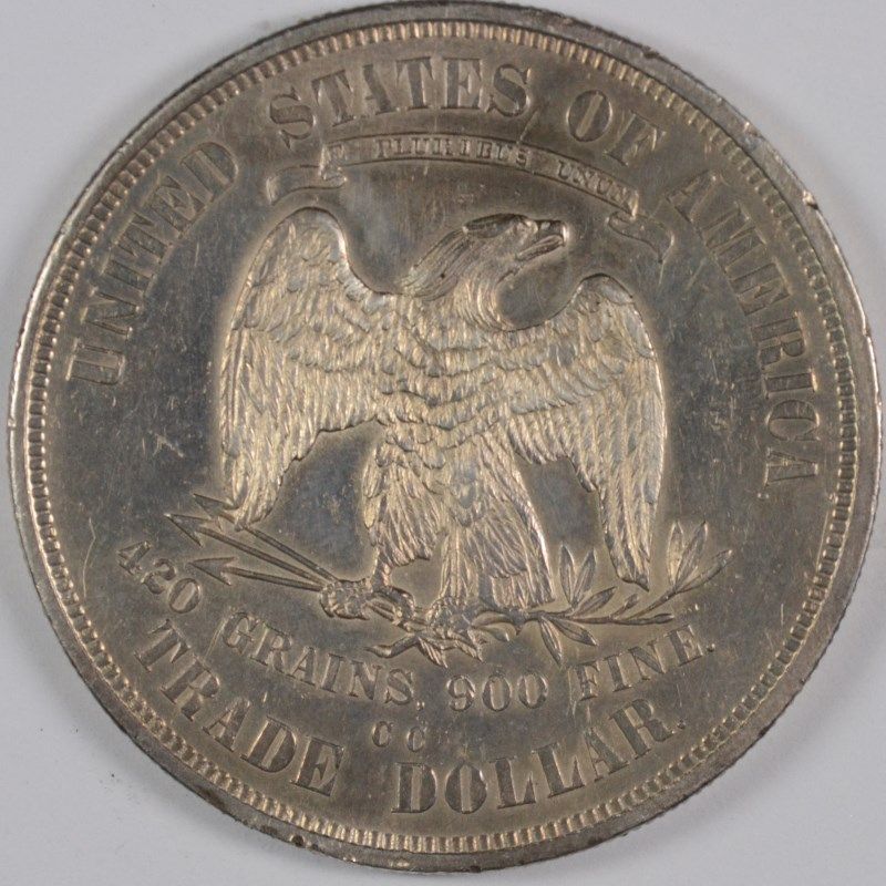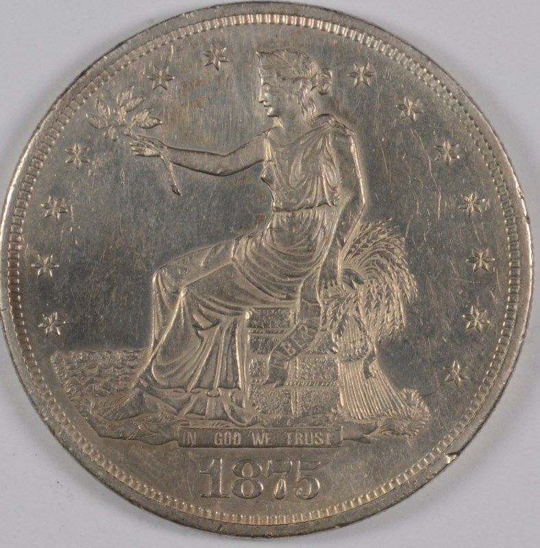 1875-CC TRADE DOLLAR, MS-62 LOTS OF LUSTRE, VERY RARE "CC ISSUE