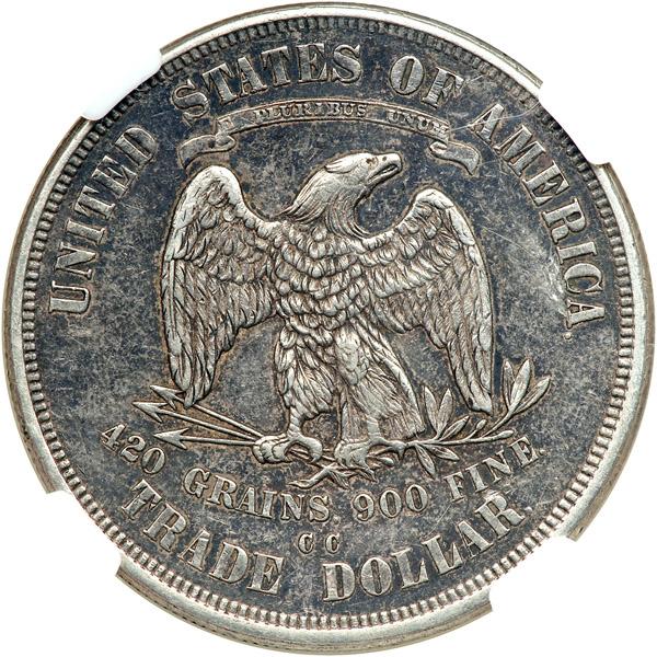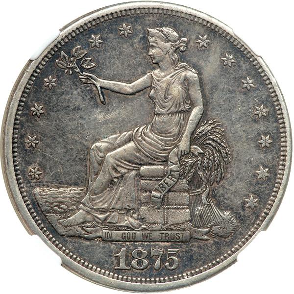1875-CC Trade Dollar. NGC graded EF-45. Gun metal gray toning.