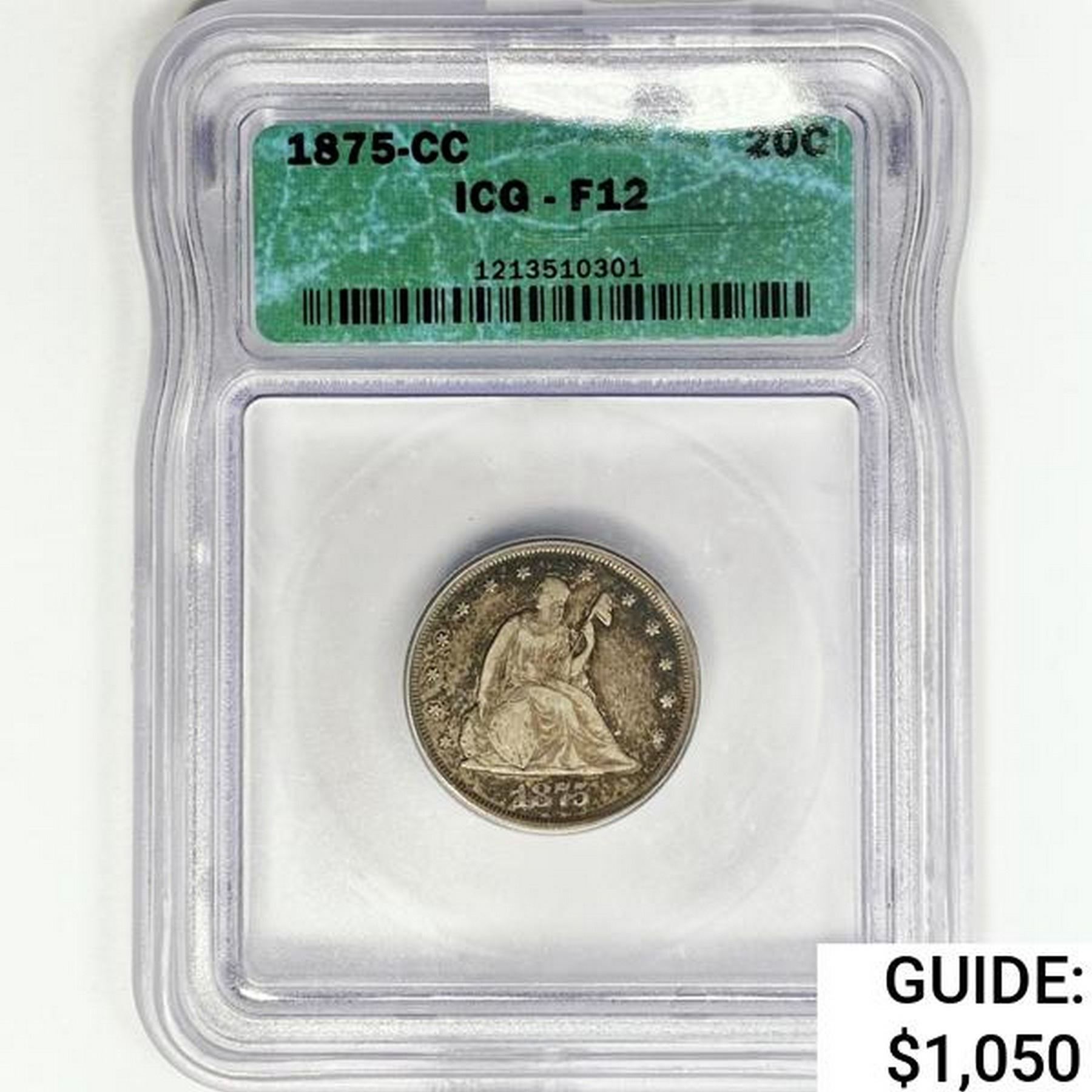 1875-CC Twenty Cent Piece ICG F12