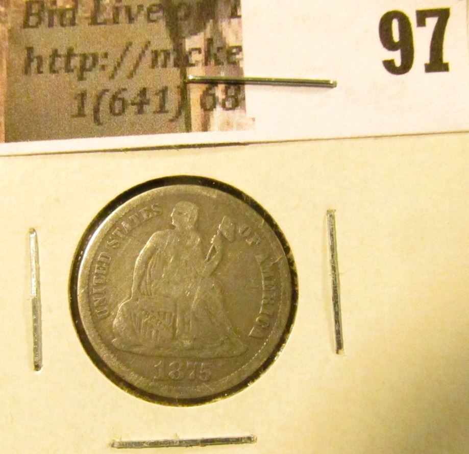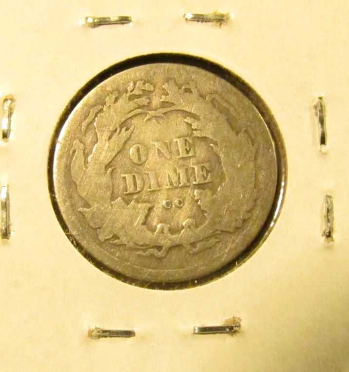 1875 CC U.S. Seated Liberty Dime, Fine, Mintmark above bow.