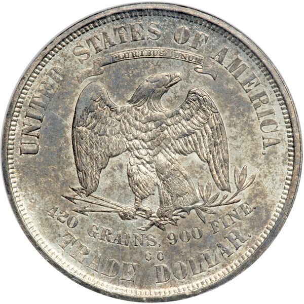 1875-CC. PCI graded MS-63. Irregular toning on both sides. Desirable CC-mint issue. Much of the early production for 1873-75 was exported from West Coast ports and ended up in the Orient. Our grade is MS60 lightly cleaned and toned .