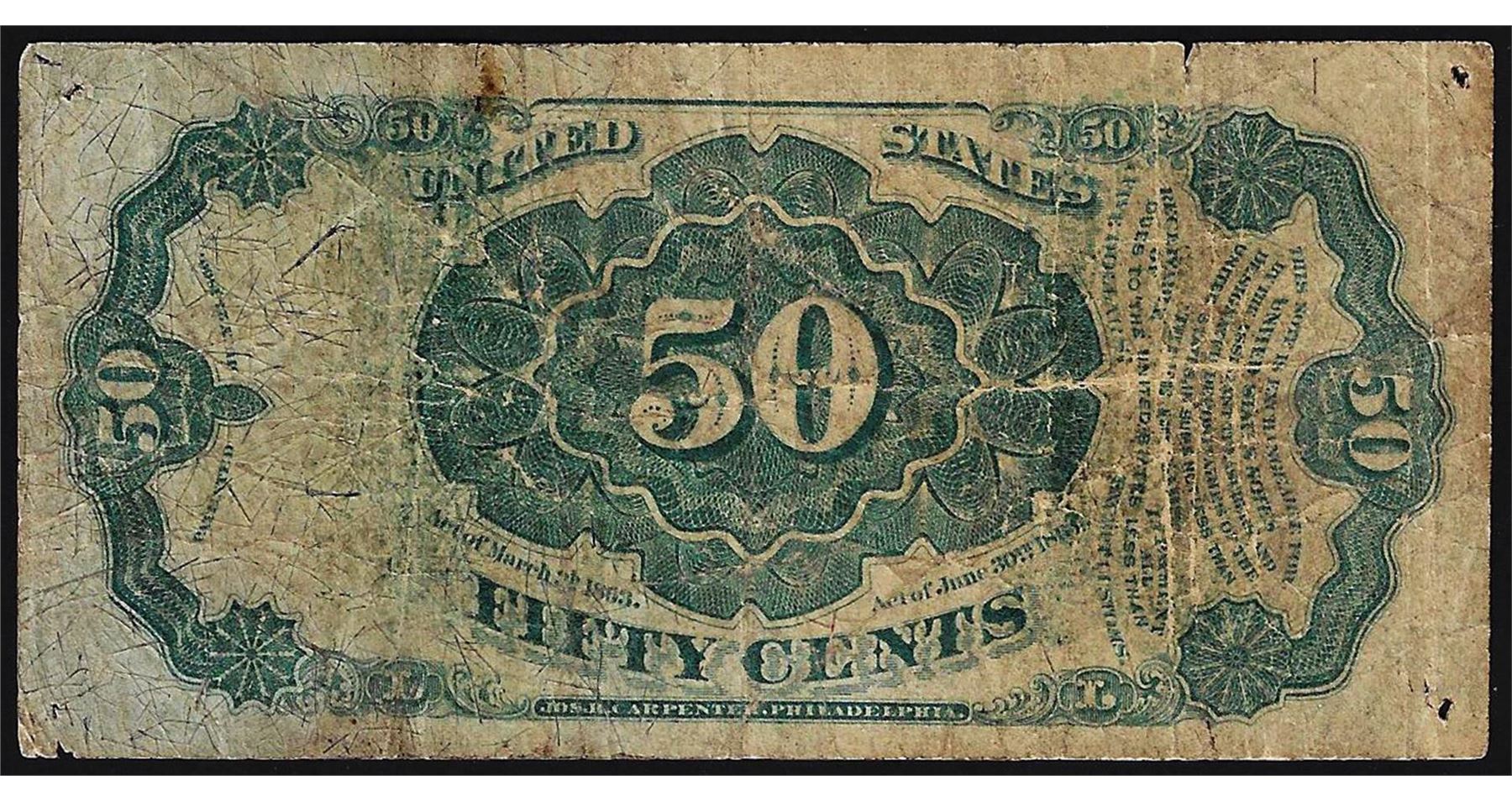One 1875 Fifty Cents Fifth Issue Fractional Currency Note.