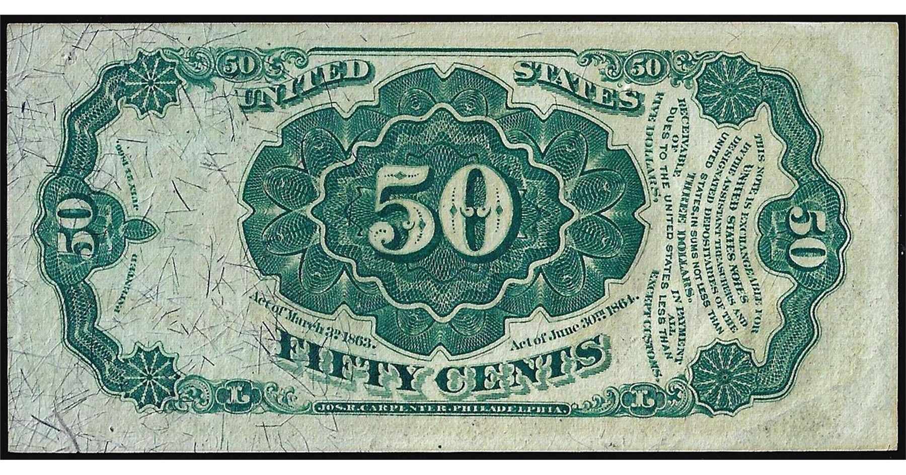 One 1875 Fifty Cents Fifth Issue Fractional Currency Note.