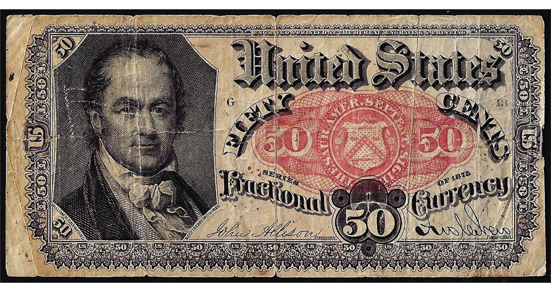 One 1875 Fifty Cents Fifth Issue Fractional Currency Note.