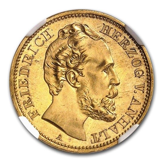 One piece 1875 German States Anhalt-Dessau Gold 20 Mark MS-66 NGC