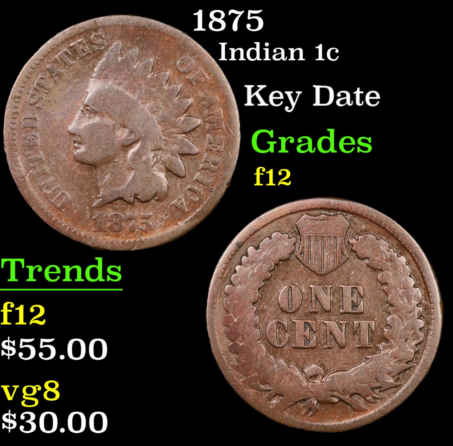 1875 Key Date . Indian Cent 1c Grades f, fine. According to Jaime Hernandez from PCGS, ÔThe 1875 Indian Cent is one of the scarcer issues in the series. This date gravitates more towards being one of the lower mintage issues in the series. Very scarce. With an original mintage of over 13.5 million; PCGS estimates that only 4000 survive in all grades.