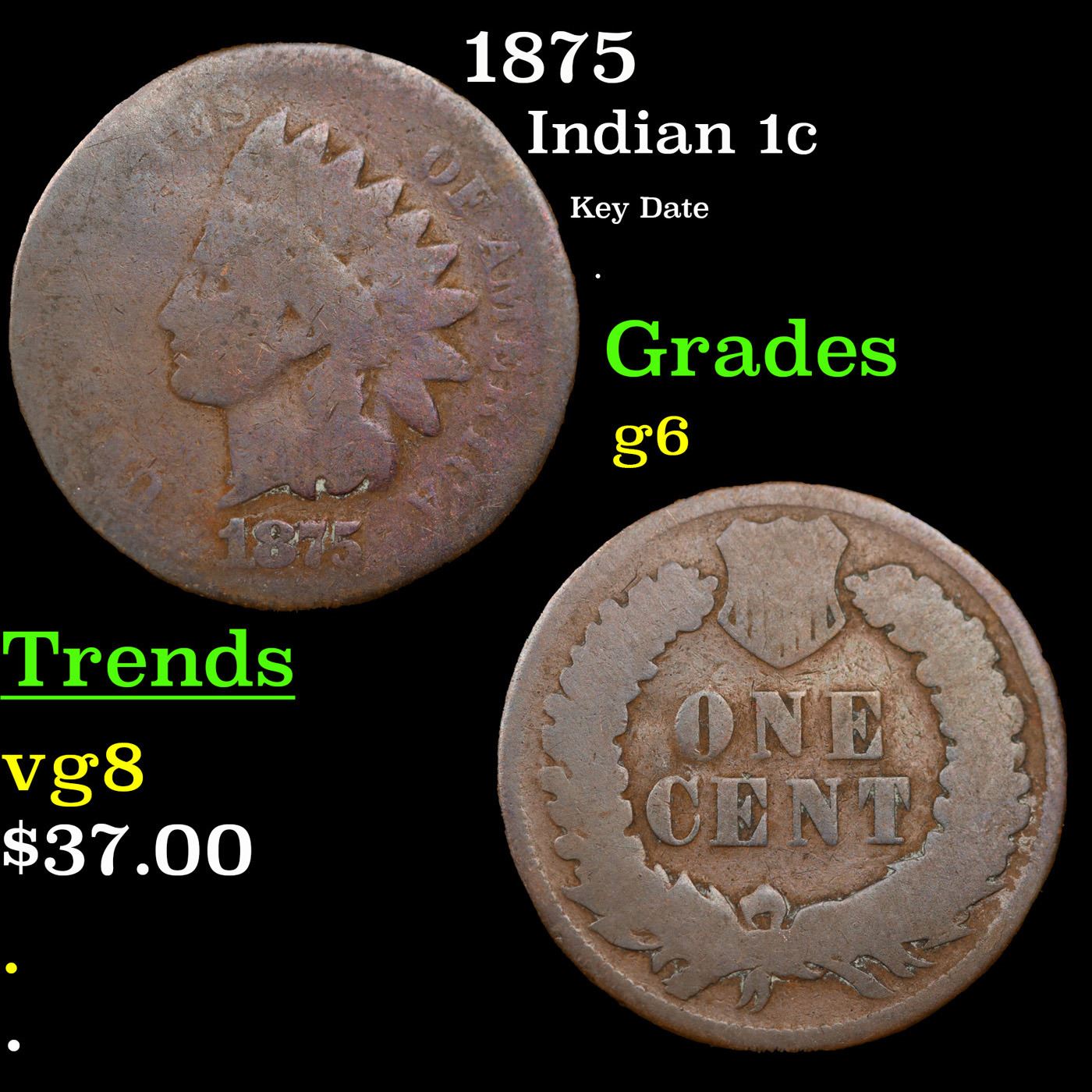 1875 Indian Cent 1c Grades g+. According to Jaime Hernandez from PCGS, ‘The 1875 Indian Cent is one of the scarcer issues in the series. This date gravitates more towards being one of the lower mintage issues in the series. Very scarce. With an original mintage of over 13.5 million; PCGS estimates that only 4000 survive in all grades.