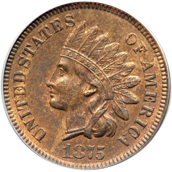 1875 Indian Head Cent. PCGS graded MS-63 Red & Brown. Some mint red visible (PCGS # 2122) .