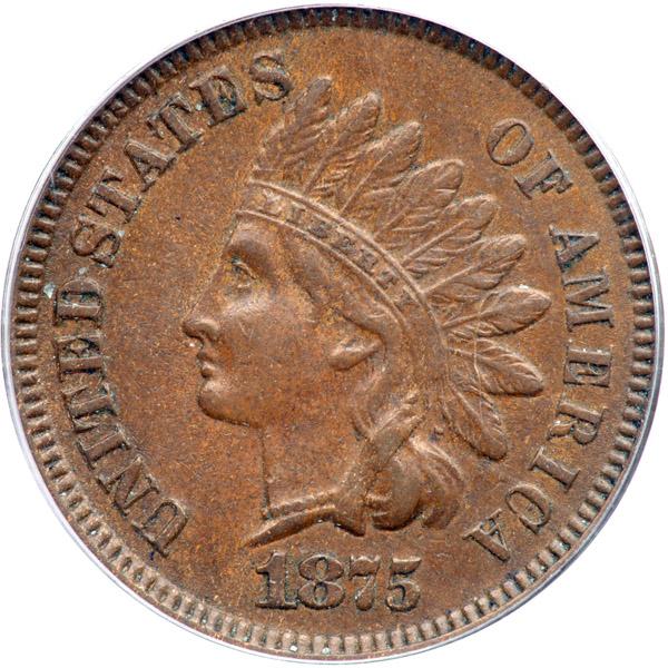 1875 Indian Head Cent. PCGS graded AU-55 Brown (PCGS # 2121) .