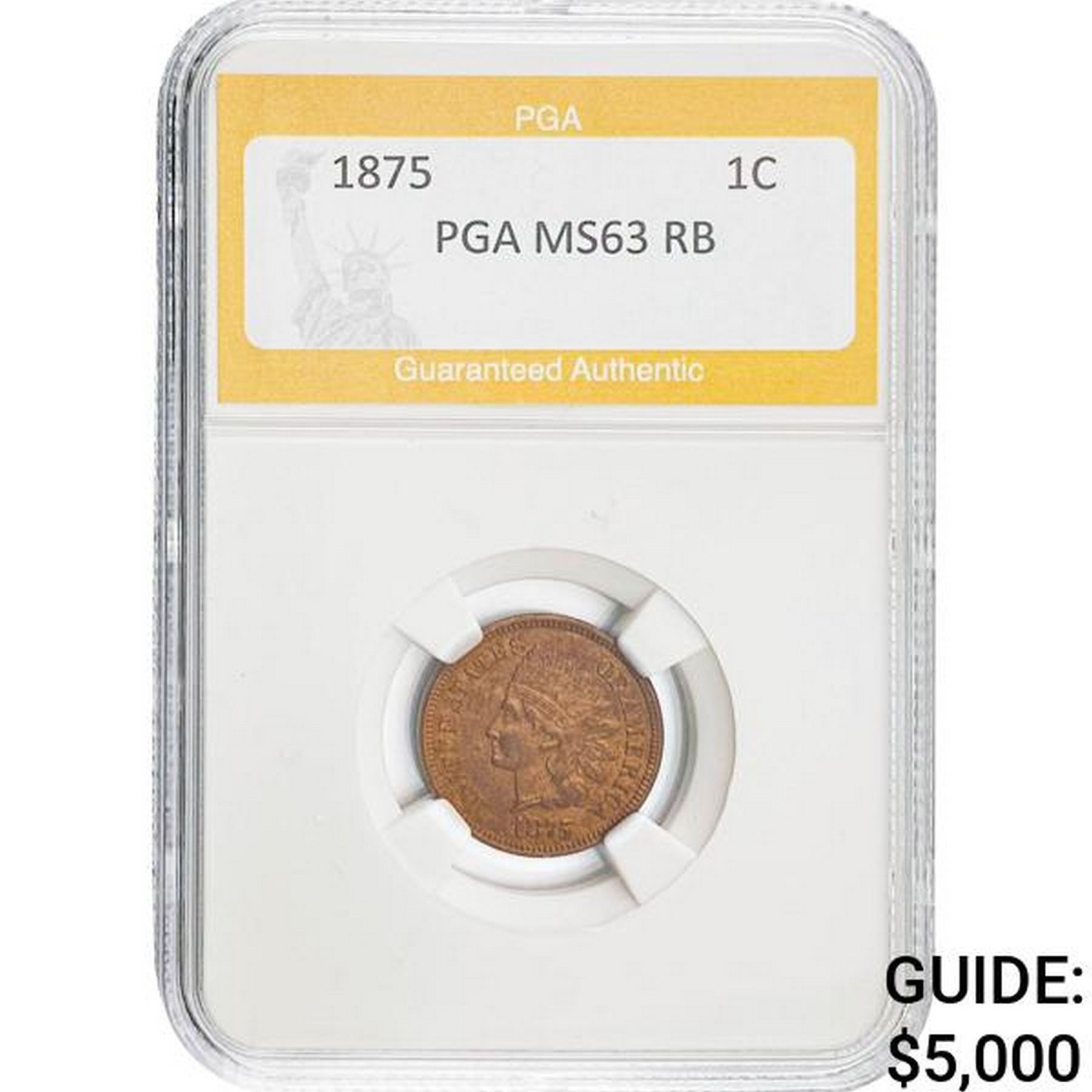 1875 Indian Head Cent PGA MS63 RB