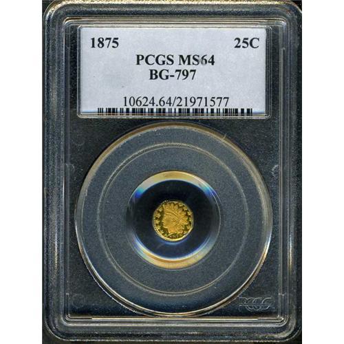 1875 Indian Head Octagonal 25c BG-797 PCGS MS64
