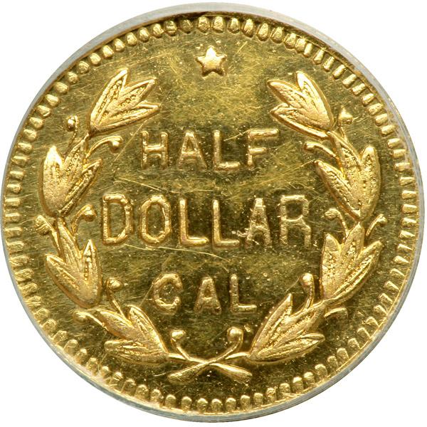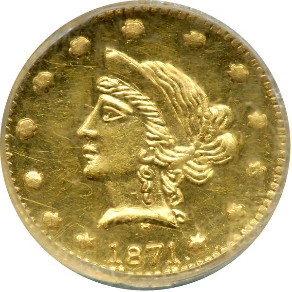 1871 Half Dollar Round. Breen and Gillio-1045. Rarity 5. NGC graded MS-62 Prooflike. A brilliant untoned example. Pop 2; 1 finer in 63 PL.