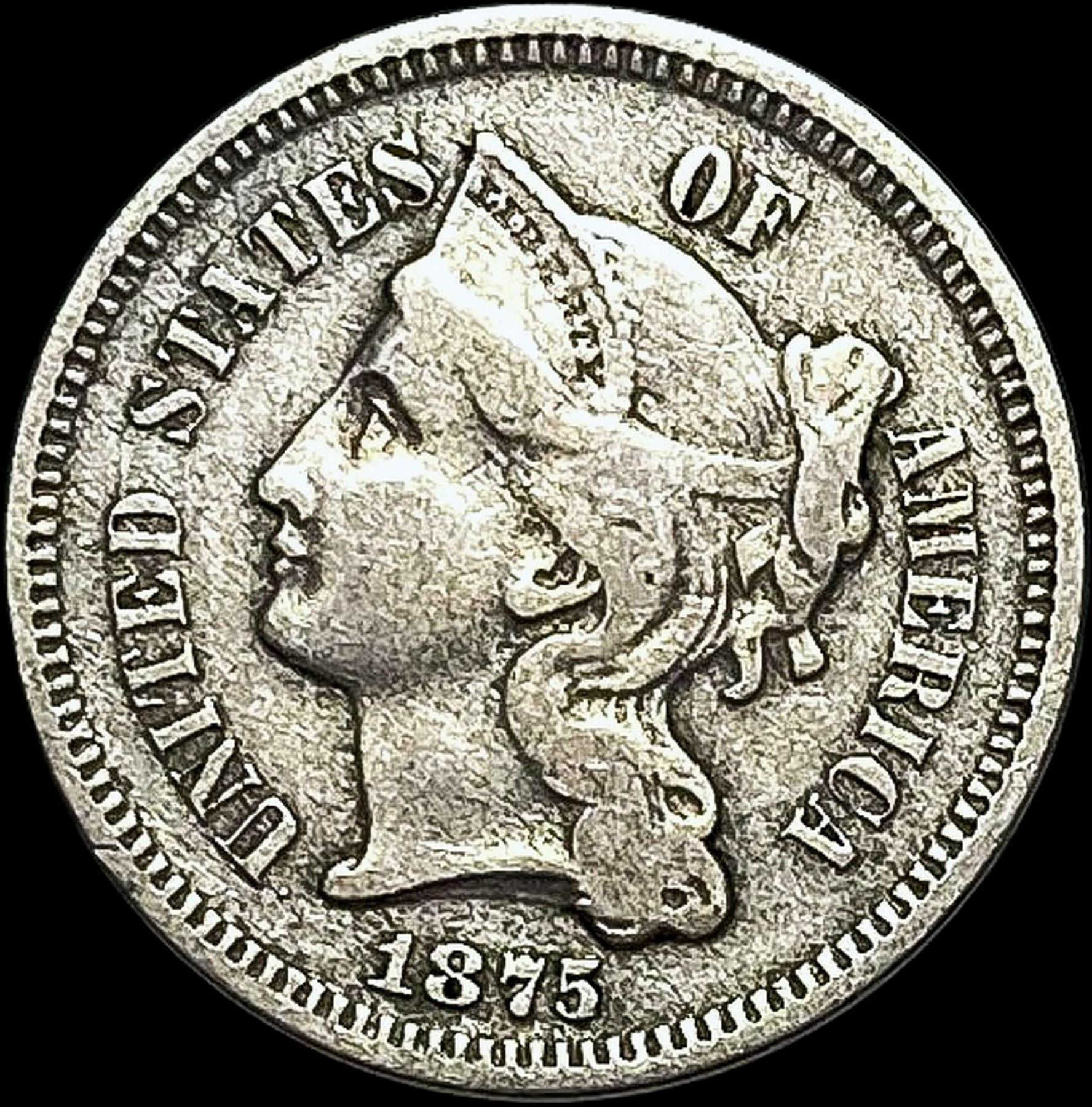 1875 Nickel Three-Cent Piece LIGHTLY CIRCULATED
