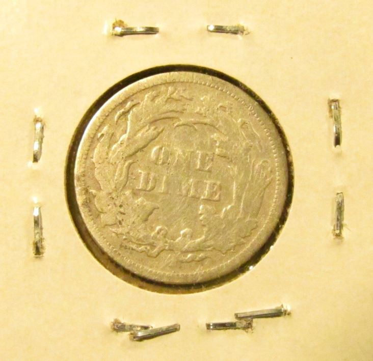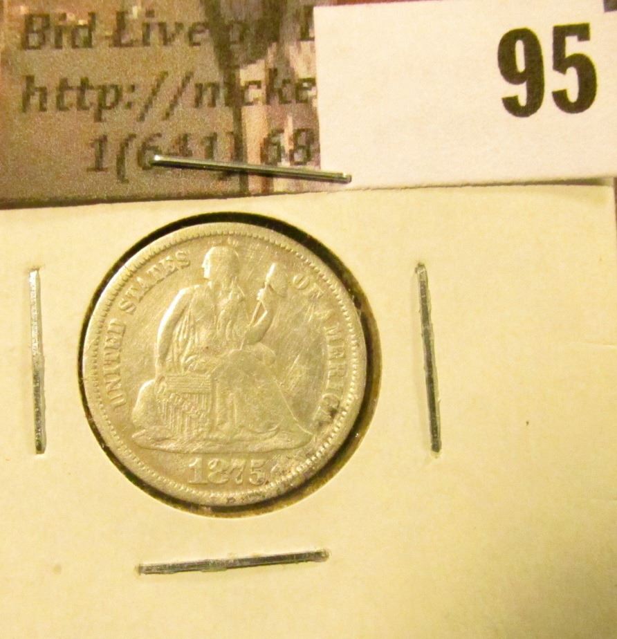 1875 P U.S. Seated Liberty Dime, VF, ground recovery.