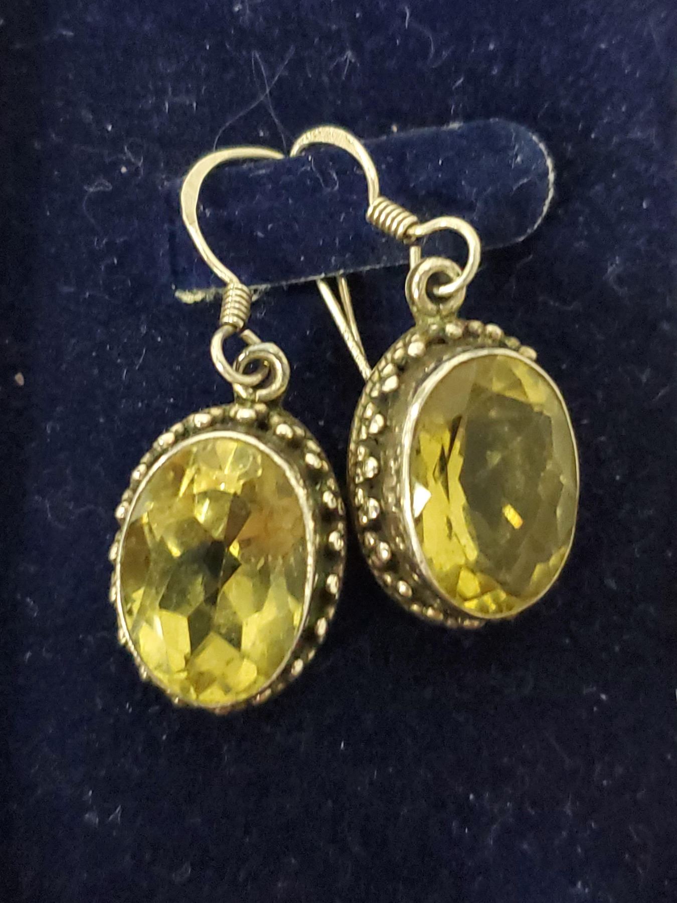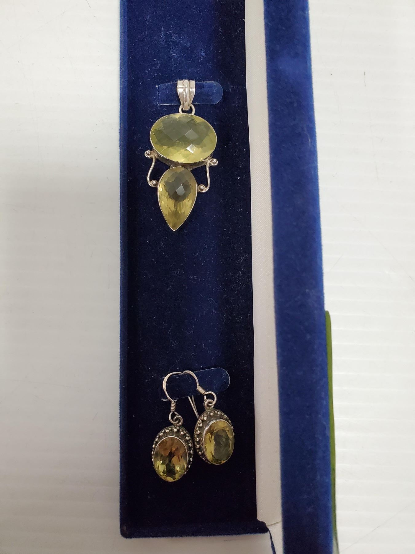 MINED IN BRAZIL EARRINGS: 16MM X 11MM OVAL BEZEL CUT 10.05 GRAMS, APPRAISED APPROX RETAIL $500 PENDANT: 18MM X 24MM & 23MM X 14MM, BEZEL CUT 14.49 GRAMS; APPRAISED APPROX RETAIL $500