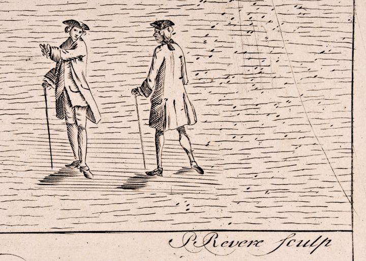 c. 1767, Paul Revere Engraving, “In Cambridge New England,” Original Plate Reprint of 1875, Half-Plate View Off of The Original Copper Printing Plate, Signed In The Copper Plate by Paul Revere, Choice Near Mint.