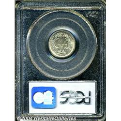 <B>1875-S<10C> Mintmark Below Bow MS64 PCGS.</B></I> Well impressed motifs, with a veneer of light gold color over lustrous surfaces. A couple of miniscule marks preclude a higher grade. Population: 42 in 64, 17 finer (9/04). <BR><BR><B>Important notice:</B> Heritage usually auctions material at the rate of 200-250 lots per hour. On some occasions eBay Live bid software or the Internet may not be able to keep up with the pace of the auction. We recommend placing a realistic absentee bid now as insurance to avoid disappointment. Occasionally the auctioneer may eliminate or reject an eBay Live bid, and the auctioneer may also reopen a lot after the close of the eBay live bidding (usually because we missed an audience bid), and may reject your bid even if it shows you as the winning bidder. By bidding via eBay Live, you agree that Heritage may award the lot to another bidder at its sole discretion under the circumstances described above or any other reasonable circumstances. Since eBay bids are not shown to us until we open the lot on the floor, we treat those bids just like floor bids. In most cases the floor responds before the eBay bid is presented to us, due to Internet lag time, so for consistency we have made it a policy that floor bids are always considered first over tie eBay live bids. Also please note that all Heritage lots purchased through eBay Live carry a 20% Buyer's Premium. Please make sure you read the Terms and Conditions before you bid.