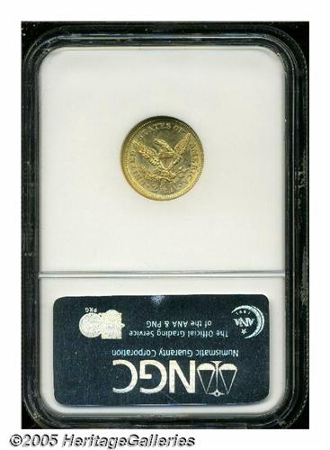 <B>1875-S<$2 1/2> MS61 NGC.</B></I> A scarce, low mintage Quarter Eagle with only 11,600 pieces struck, and an issue that is very elusive in mint condition. This piece has rich yellow-gold coloration and is well defined with a number of tiny abrasions present on each side that serve to limit the grade.