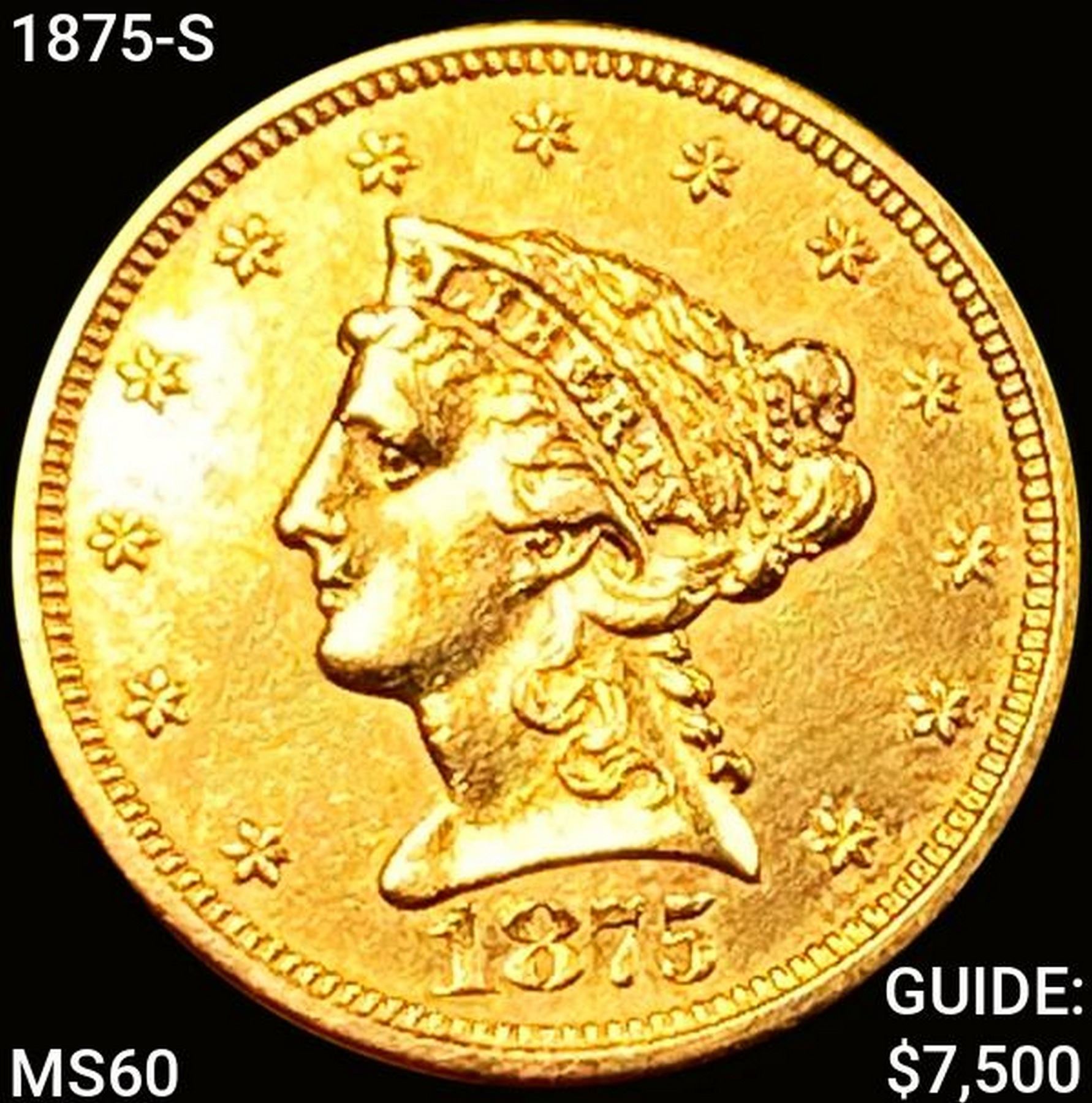 1875-S $2.50 Gold Quarter Eagle CLOSELY UNCIRCULAT