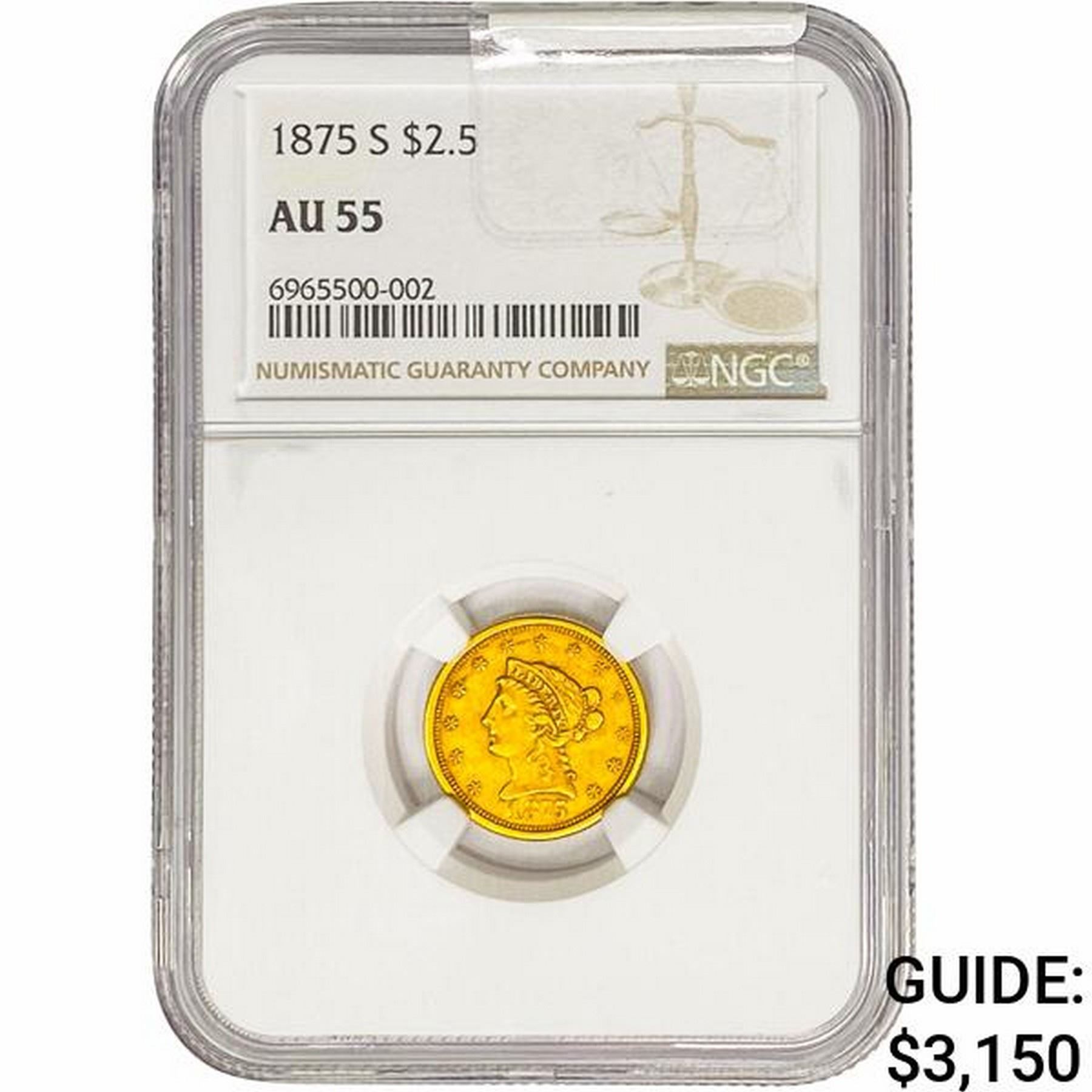 1875-S $2.50 Gold Quarter Eagle NGC AU55
