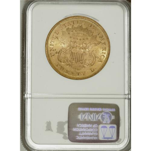1875-S $20 MS60 NGC. NGC Census: (251/570). PCGS Popul