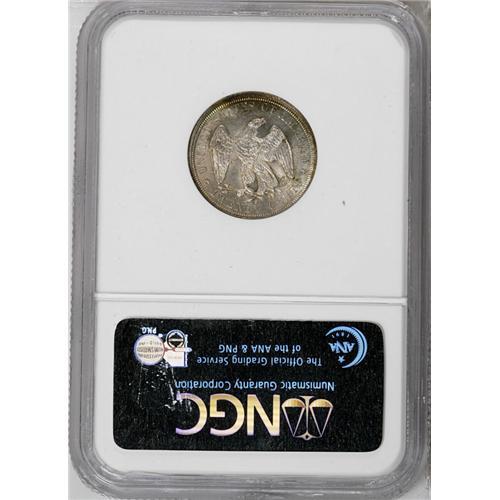 <B>1875-S<20C> MS63 NGC.</B></I> A richly toned and sharply struck example of this short-lived series. Lemon-orange and violet-red patina adorns both sides, which display small abrasions that account for the grade.