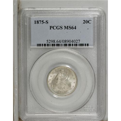 1875-S 20C MS64 PCGS. A well struck and frosty example