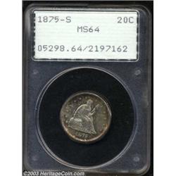 <table><tr><td><TABLE cellSpacing=0 cellPadding=0 width="100%" bgColor=#000000 border=0><TBODY> <TR><TD width="100%"><TABLE cellSpacing=1 cellPadding=3 width="100%" border=0><TBODY><TR><TD width="100%" bgColor=#79735c><FONT face=arial color=#ffffff size=3><B>Description</B> </FONT></TD></TR><TR><TD width="100%" bgColor=#ffffff><FONT face=arial size=2><B>1875-S 20C MS64 PCGS.</B></I> MPD-001. A misplaced date variety, with the unmistakable evidence of the top of a 5 in the denticles below the 7 in the date. Both sides exhibit liberal amounts of apple-green, antique-gold, and russet-magenta patina. Well struck except for stars 7 and 8, and the top of the eagle's left (facing) wing tip. One small contact mark is noted at the center of the obverse on Liberty's leg. This variety is the second reverse die pairing with this obverse, the mintmark is not repunched, and there are no visible die cracks. Housed in an early PCGS holder.<BR><I>From the Dr. Irving Arenberg Collection, Part I.</B></I> </FONT></TD></TR></TBODY></TABLE></TD></TR></TBODY></TABLE><BR><A name=PricesRealized></A><TABLE cellSpacing=0 cellPadding=0 width="100%" bgColor=#000000 border=0><TBODY><TR><TD width="100%"><TABLE cellSpacing=1 cellPadding=3 width="100%" border=0><TBODY><TR><TD width="100%" bgColor=#79735c><A name=PR><FONT face=arial color=#ffffff size=3><B>Previous Prices from Heritage Auctions</B> </FONT></A></TD></TR><TR><TD bgColor=#f6f6ed><TABLE cellSpacing=0 cellPadding=0 width="100%" border=1><TBODY><TR><TD align=middle width="33%"><B>Date</B></TD><TD align=middle width="33%"><B>Service</B></TD><TD align=middle width="33%"><B>Price</B></TD></TR><TR bgColor=whitesmoke><TD width="33%"><B>09/02/2003</B></TD><TD width="33%">PCGS</TD><TD width="33%">$1,380.00</TD></TR><TR bgColor=whitesmoke><TD width="33%"><B>09/02/2003</B></TD><TD width="33%">PCGS</TD><TD width="33%">$1,380.00</TD></TR><TR bgColor=whitesmoke><TD width="33%"><B>02/04/2003</B></TD><TD width="33%">PCGS</TD><TD width="33%">$1,150.00</TD></TR><TR bgColor=whitesmoke><TD width="33%"><B>02/12/2002</B></TD><TD width="33%">NGC</TD><TD width="33%">$1,207.50</TD></TR><TR bgColor=whitesmoke><TD width="33%"><B>02/12/2002</B></TD><TD width="33%">NGC</TD><TD width="33%">$1,207.50</TD></TR><TR bgColor=whitesmoke><TD width="33%"><B>02/20/2001</B></TD><TD width="33%">PCGS</TD><TD width="33%">$1,150.00</TD></TR><TR bgColor=whitesmoke><TD width="33%"><B>01/02/2001</B></TD><TD width="33%">PCGS</TD><TD width="33%">$1,250.00</TD></TR><TR bgColor=whitesmoke><TD width="33%"><B>01/02/2001</B></TD><TD width="33%">PCGS</TD><TD width="33%">$1,250.00</TD></TR><TR bgColor=whitesmoke><TD width="33%"><B>02/01/2000</B></TD><TD width="33%">NGC</TD><TD width="33%">$1,400.00</TD></TR><TR bgColor=whitesmoke><TD width="33%"><B>07/29/2003</B></TD><TD width="33%">PCGS</TD><TD width="33%">$1,322.50</TD></TR><TR bgColor=whitesmoke><TD width="33%"><B>07/29/2003</B></TD><TD width="33%">PCGS</TD><TD width="33%">$1,322.50</TD></TR><TR bgColor=whitesmoke><TD width="33%"><B>07/29/2003</B></TD><TD width="33%">PCGS</TD><TD width="33%">$2,070.00</TD></TR><TR bgColor=whitesmoke><TD width="33%"><B>07/29/2003</B></TD><TD width="33%">PCGS</TD><TD width="33%">$1,610.00</TD></TR><TR bgColor=whitesmoke><TD width="33%"><B>07/29/2003</B></TD><TD width="33%">PCGS</TD><TD width="33%">$1,610.00</TD></TR><TR bgColor=whitesmoke><TD width="33%"><B>07/29/2003</B></TD><TD width="33%">PCGS</TD><TD width="33%">$1,955.00</TD></TR><TR bgColor=whitesmoke><TD width="33%"><B>03/23/2003</B></TD><TD width="33%">PCGS</TD><TD width="33%">$1,121.25</TD></TR><TR bgColor=whitesmoke><TD width="33%"><B>03/23/2003</B></TD><TD width="33%">PCGS</TD><TD width="33%">$1,121.25</TD></TR><TR bgColor=whitesmoke><TD width="33%"><B>07/30/2002</B></TD><TD width="33%">PCGS</TD><TD width="33%">$1,495.00</TD></TR><TR bgColor=whitesmoke><TD width="33%"><B>01/12/2002</B></TD><TD width="33%">NGC</TD><TD width="33%">$977.50</TD></TR><TR bgColor=whitesmoke><TD width="33%"><B>01/12/2002</B></TD><TD width="33%">NGC</TD><TD width="33%">$977.50</TD></TR><TR bgColor=whitesmoke><TD width="33%"><B>01/12/2002</B></TD><TD width="33%">PCGS</TD><TD width="33%">$1,207.50</TD></TR><TR bgColor=whitesmoke><TD width="33%"><B>10/06/2001</B></TD><TD width="33%">PCGS</TD><TD width="33%">$1,265.00</TD></TR><TR bgColor=whitesmoke><TD width="33%"><B>10/06/2001</B></TD><TD width="33%">PCGS</TD><TD width="33%">$1,265.00</TD></TR><TR bgColor=whitesmoke><TD width="33%"><B>05/31/2001</B></TD><TD width="33%">PCGS</TD><TD width="33%">$1,178.75</TD></TR><TR bgColor=whitesmoke><TD width="33%"><B>04/05/2001</B></TD><TD width="33%">NGC</TD><TD width="33%">$1,035.00</TD></TR><TR bgColor=whitesmoke><TD width="33%"><B>04/05/2001</B></TD><TD width="33%">NGC</TD><TD width="33%">$1,035.00</TD></TR><TR bgColor=whitesmoke><TD width="33%"><B>01/05/2001</B></TD><TD width="33%">PCGS</TD><TD width="33%">$1,207.50</TD></TR><TR bgColor=whitesmoke><TD width="33%"><B>11/17/2000</B></TD><TD width="33%">NGC</TD><TD width="33%">$1,035.00</TD></TR><TR bgColor=whitesmoke><TD width="33%"><B>11/17/2000</B></TD><TD width="33%">NGC</TD><TD width="33%">$1,035.00</TD></TR><TR bgColor=whitesmoke><TD width="33%"><B>08/07/2000</B></TD><TD width="33%">PCGS</TD><TD width="33%">$1,610.00</TD></TR><TR bgColor=whitesmoke><TD width="33%"><B>06/10/2000</B></TD><TD width="33%">NGC</TD><TD width="33%">$1,035.00</TD></TR><TR bgColor=whitesmoke><TD width="33%"><B>06/10/2000</B></TD><TD width="33%">NGC</TD><TD width="33%">$1,035.00</TD></TR><TR bgColor=whitesmoke><TD width="33%"><B>05/05/2000</B></TD><TD width="33%">PCGS</TD><TD width="33%">$1,092.50</TD></TR><TR bgColor=whitesmoke><TD width="33%"><B>04/14/2000</B></TD><TD width="33%">PCGS</TD><TD width="33%">$1,035.00</TD></TR><TR bgColor=whitesmoke><TD width="33%"><B>04/14/2000</B></TD><TD width="33%">PCGS</TD><TD width="33%">$1,035.00</TD></TR><TR bgColor=whitesmoke><TD width="33%"><B>08/07/1999</B></TD><TD width="33%">PCGS</TD><TD width="33%">$1,437.50</TD></TR><TR bgColor=wh