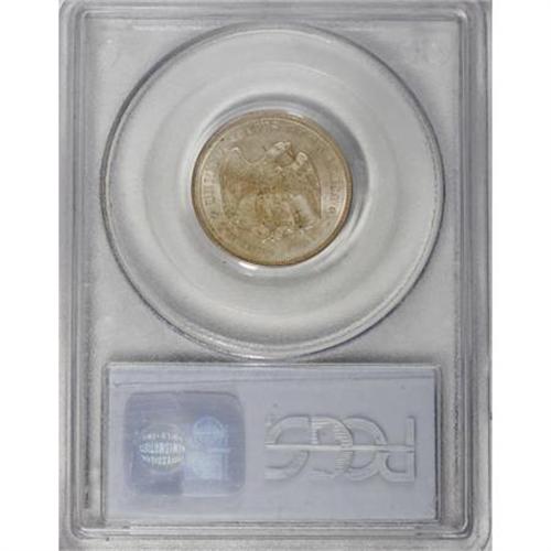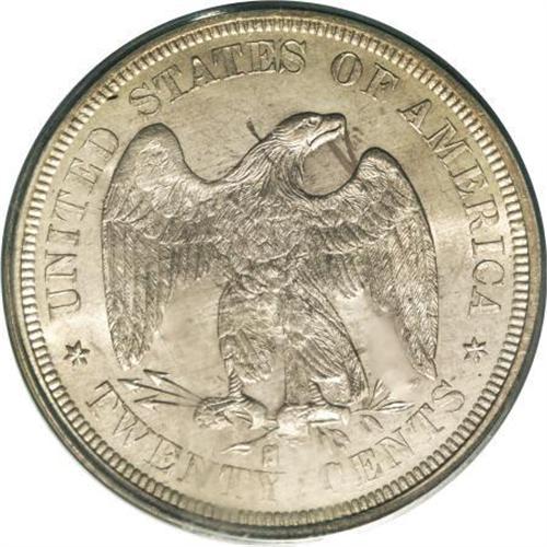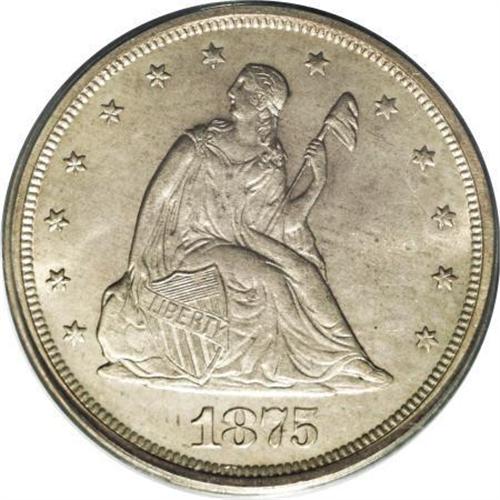 <B>1875-S 20C MS65 PCGS.</B></I> MPD-002. The most prominent of the various misplaced date varieties of the denomination. The top of an 8 looms above the denticles below the 18. Dusky caramel-gold toning enriches this satiny and nearly unabraded Gem. A good strike with slight incompleteness on Liberty's hair and the nearby stars.<BR><BR><B>Coin Engraver:</B> William Barber<BR><BR><b>Shipping:</b> Coins & Currency (<a target="_blank" href="http://www.heritageauctions.com/common/shipping.php">view shipping information</a>)