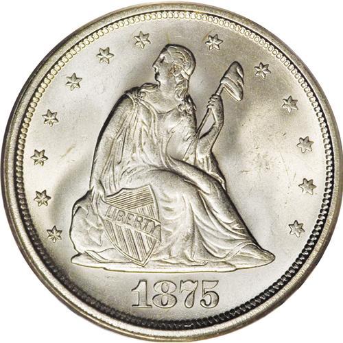 1875-S 20C MS66 PCGS. Breen-3875, Doubled "$" Mintmark
