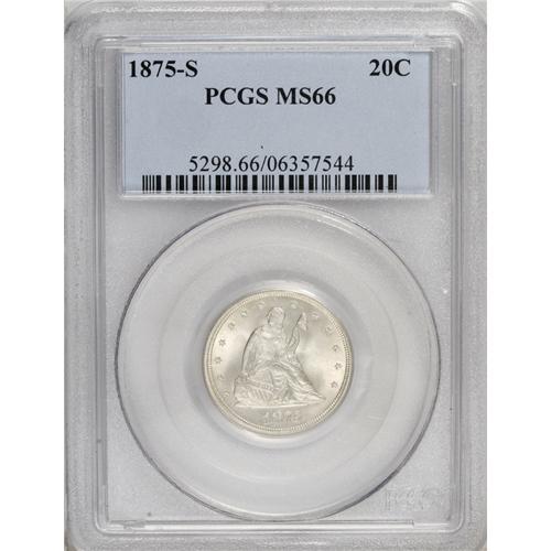 1875-S 20C MS66 PCGS. Frosty and very well struck, eve