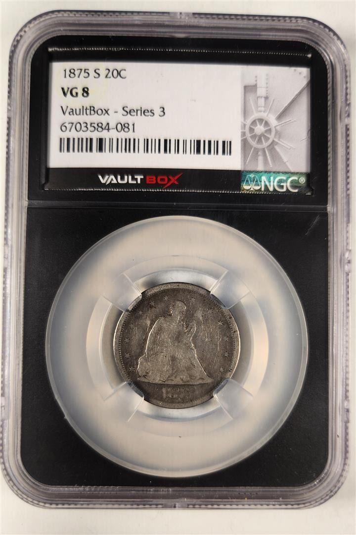One 1875-S 20C NGC VG8 Twenty Cent Piece.
