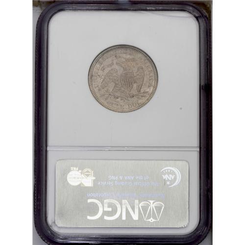<B>1875-S<25C> MS64 NGC.</B></I> Lightly toned in pale violet and golden hues, with shallow field marks clustered about the date. The high mintage of the 1875-S twenty cent piece lulls many collectors into thinking the same is true of the S-mint quarter from this year. In reality, the mintage is a comparatively low 680,000 pieces and perhaps fewer than 100 Mint State coins are extant. Population: 17 in 64, 7 finer (3/06).