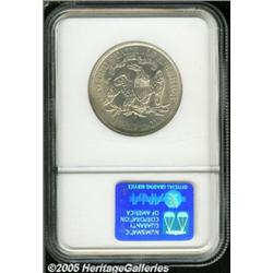 <B>1875-S 50C MS63 NGC.</B></I> Wisps of tan patina enrich this lustrous and crisply struck Half Dollar. Faint blemishes between stars six and seven combine to limit the grade. Portions of the banner and the eagle's plumage are absent, as made from a lapped die.