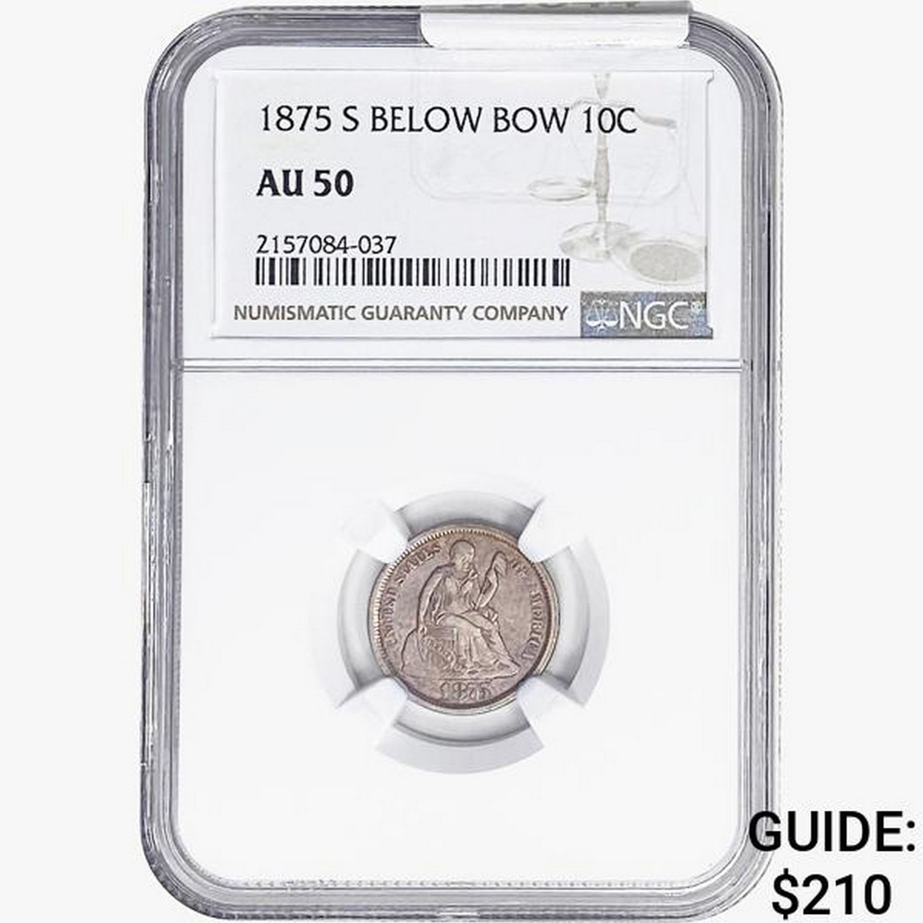 1875-S Below Bow Seated Liberty Dime NGC AU50