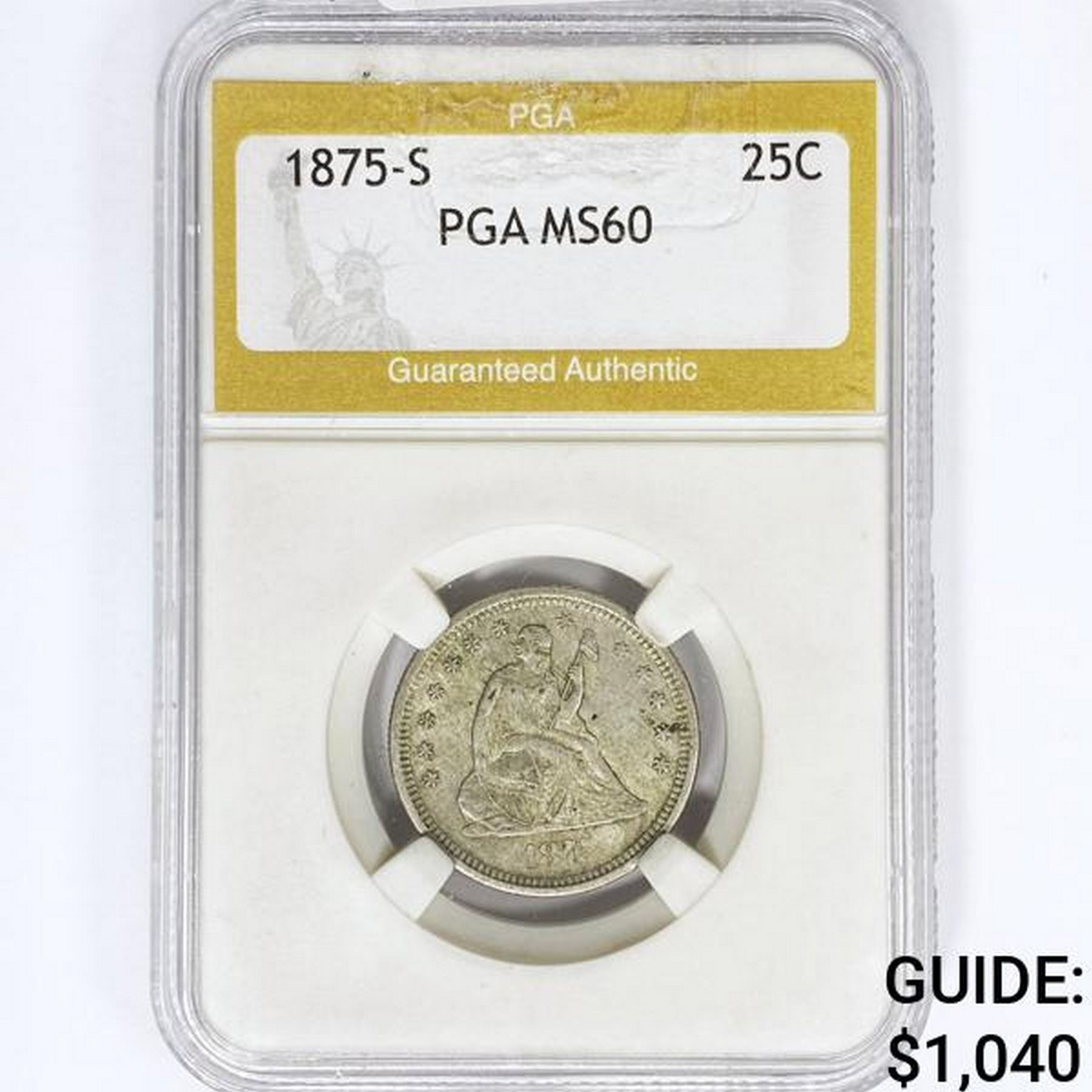 1875-S Seated Liberty Quarter PGA MS60