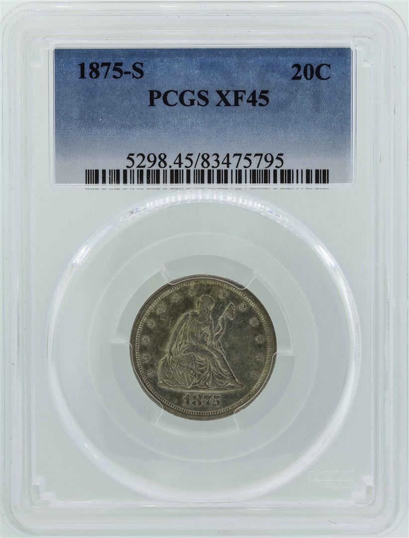 One 1875-S Seated Liberty Twenty Cent Piece Coin PCGS XF45. PCGS Certified.