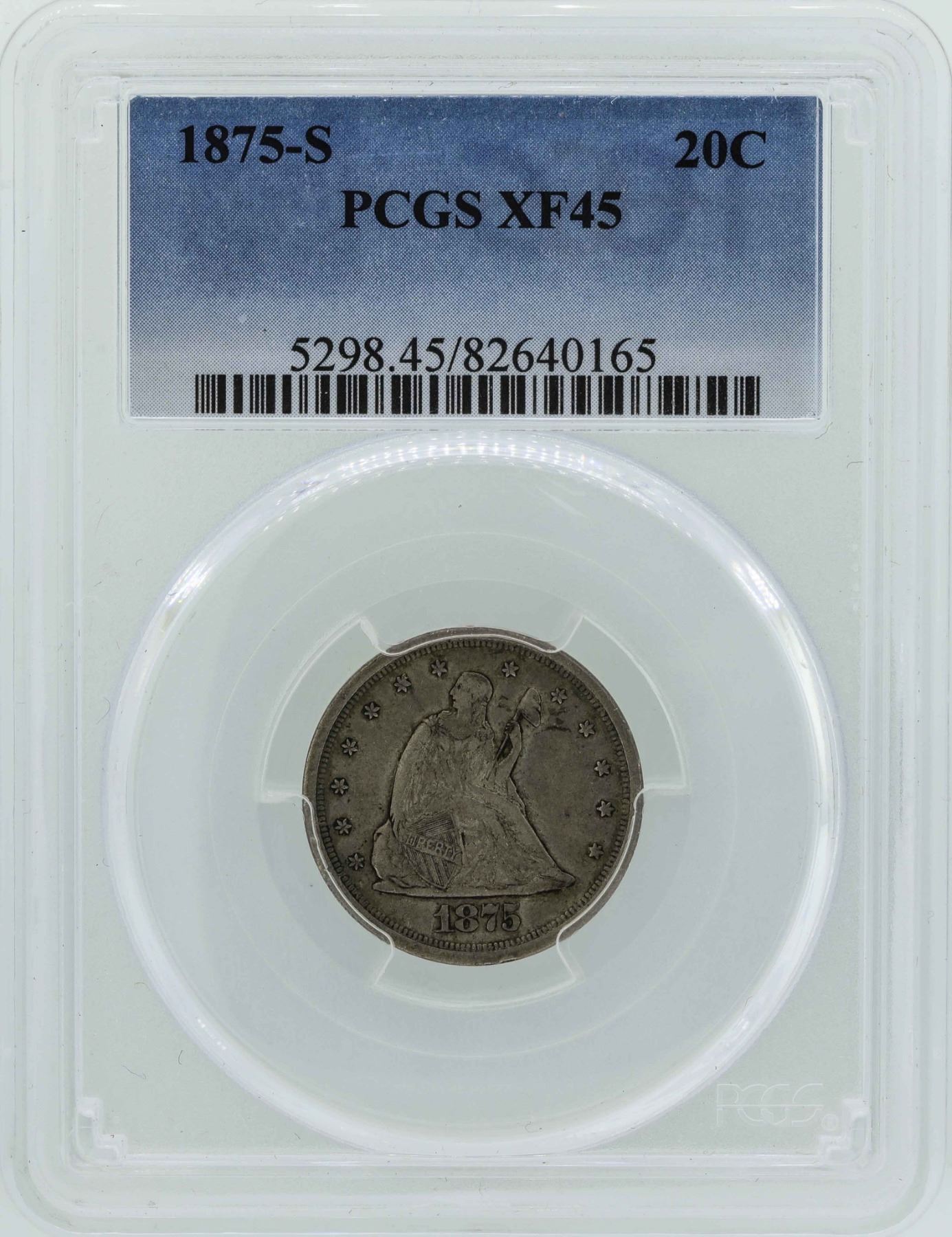 One 1875-S Seated Liberty Twenty Cent Piece Coin PCGS XF45.