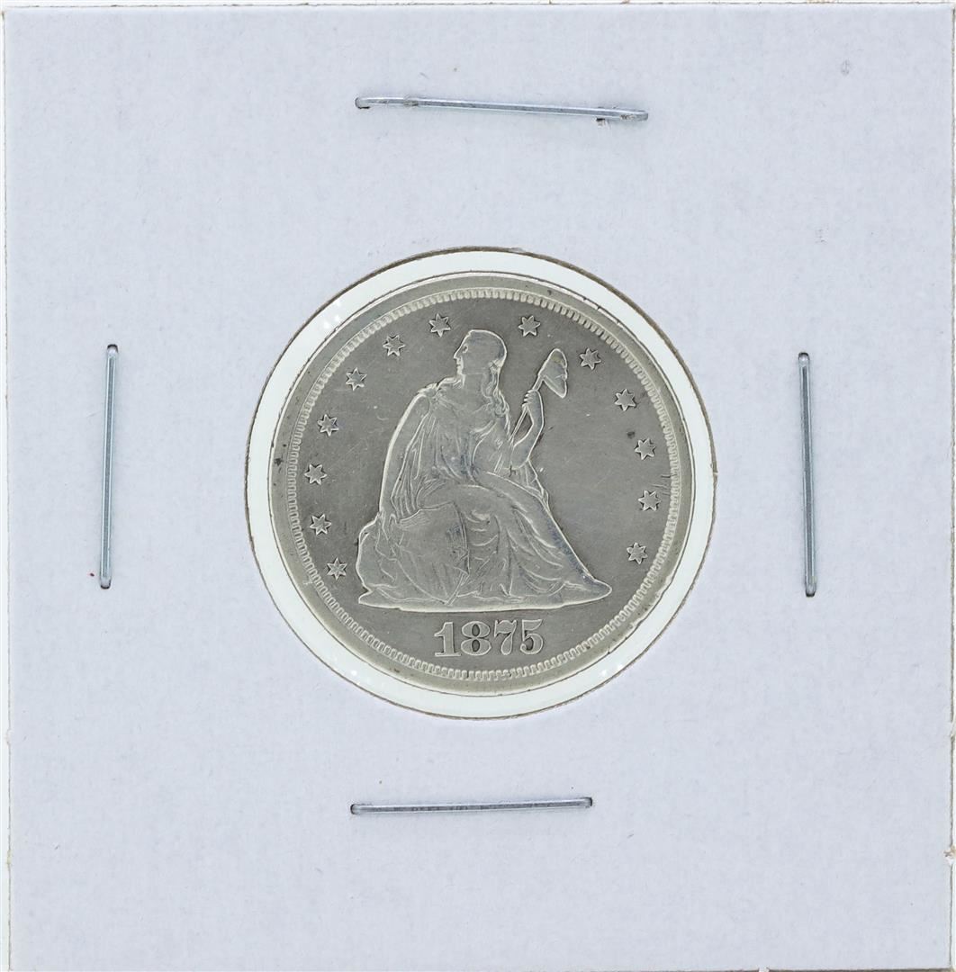 One 1875-S Seated Liberty Twenty Cent Piece Coin.