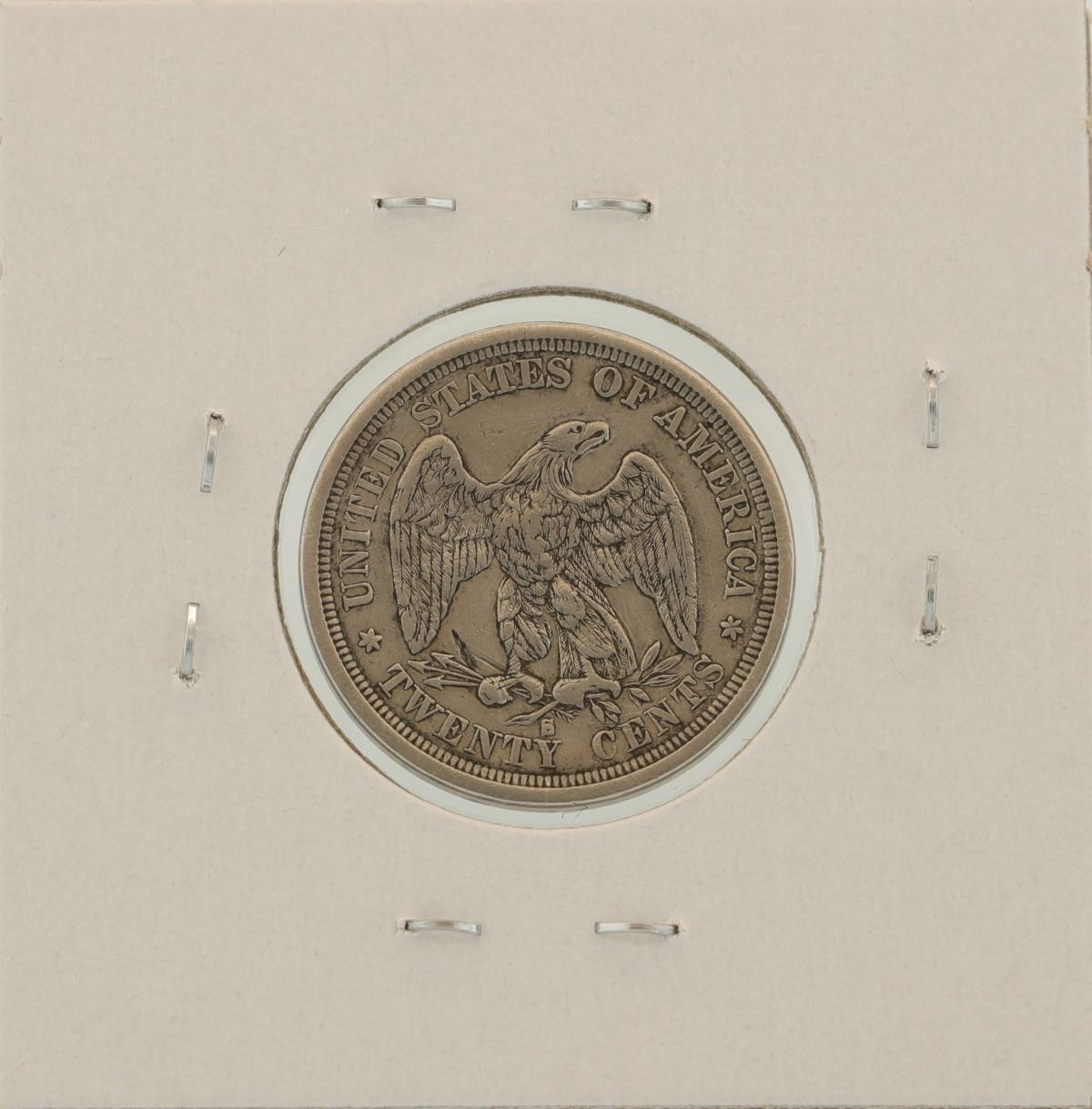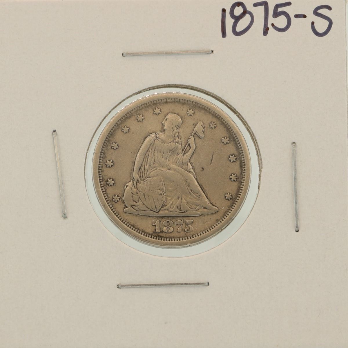 One 1875-S Seated Liberty Twenty Cent Piece Coin.