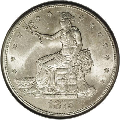 1875-S T$1 MS64 NGC. Type One Reverse. Impressive, bla 1875-S[T$1] MS64 NGC.