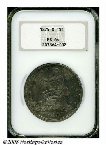 1875-S T$1 MS64 NGC. Type One Reverse, Large S. D