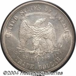 <table><tr><td><table><tr><td>1875-S T$1 MS64 PCGS. Type One Reverse. Large S mintmark. Shimmering luster sweeps across this dusky honey-gray surfaces. The eagle's right (facing) leg and Liberty's head are not fully brought up by the dies, but this beautifully undisturbed near-Gem is certain to please even the fussiest advanced collector. Encapsulated in an older green label PCGS holder. <BR><BR><B>Important notice:</B> Heritage usually auctions material at the rate of 200-250 lots per hour. On some occasions eBay Live bid software or the Internet may not be able to keep up with the pace of the auction. We recommend placing a realistic absentee bid now as insurance to avoid disappointment. Occasionally the auctioneer may eliminate or reject an eBay Live bid, and the auctioneer may also reopen a lot after the close of the eBay live bidding (usually because we missed an audience bid), and may reject your bid even if it shows you as the winning bidder. By bidding via eBay Live, you agree that Heritage may award the lot to another bidder at its sole discretion under the circumstances described above or any other reasonable circumstances. Since eBay bids are not shown to us until we open the lot on the floor, we treat those bids just like floor bids. In most cases the floor responds before the eBay bid is presented to us, due to Internet lag time, so for consistency we have made it a policy that floor bids are always considered first over tie eBay live bids. Also please note that all Heritage lots purchased through eBay Live carry a 20% Buyer's Premium. Please make sure you read the Terms and Conditions before you bid. <BR><BR><B>IMPORTANT ANNOUNCEMENT ABOUT RESERVES:</B> Heritage now divulges all reserves on its web site 7 days before every auction. If you want to know whether the reserve on this lot has been met, and if not, what the reserve amount is, please visit this lot page on the HeritageCoin.com web site, or email: bid@HeritageGalleries.com </span></font></td></tr></table></td></tr></table>