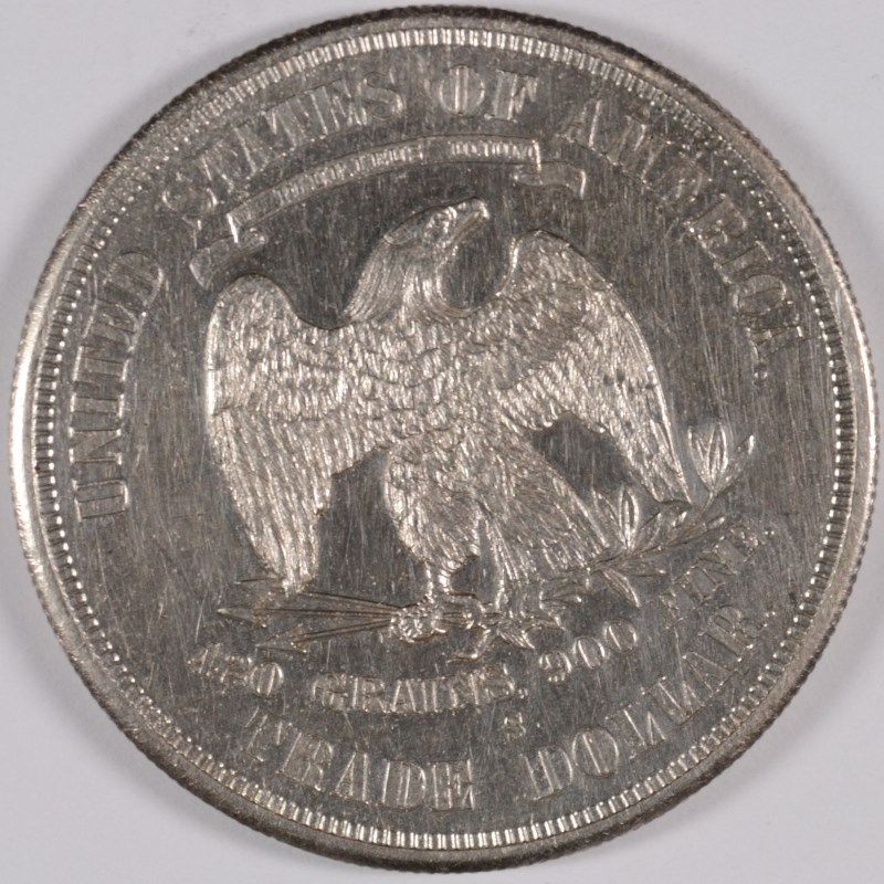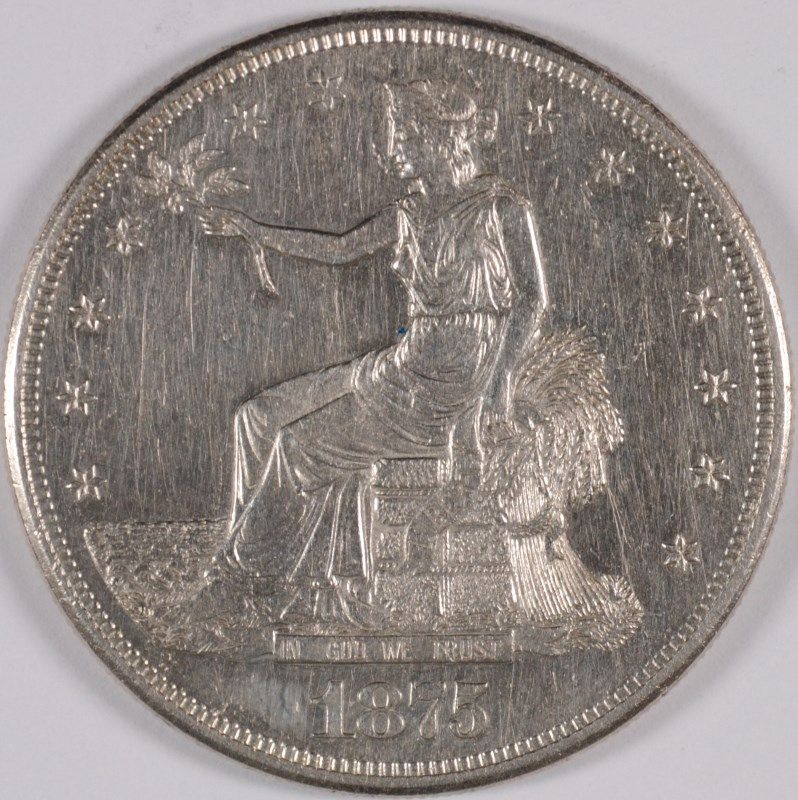 1875-S TRADE DOLLAR, MS-63 ( CLEANED ) WHITE, NICE LOOKING TYPE COIN!